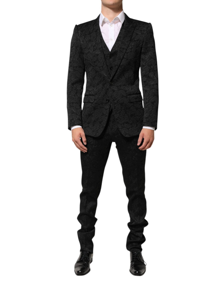 Dolce & Gabbana Schwarzer 3-teiliger Brokat-Jacquard-Anzug MARTINI