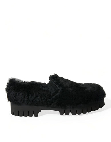 Dolce & Gabbana Black Fur Leather Slippers Dress Shoes Dolce & Gabbana