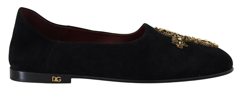 Dolce & Gabbana Black Suede Gold Cross Slip On Loafers Shoes Dolce & Gabbana