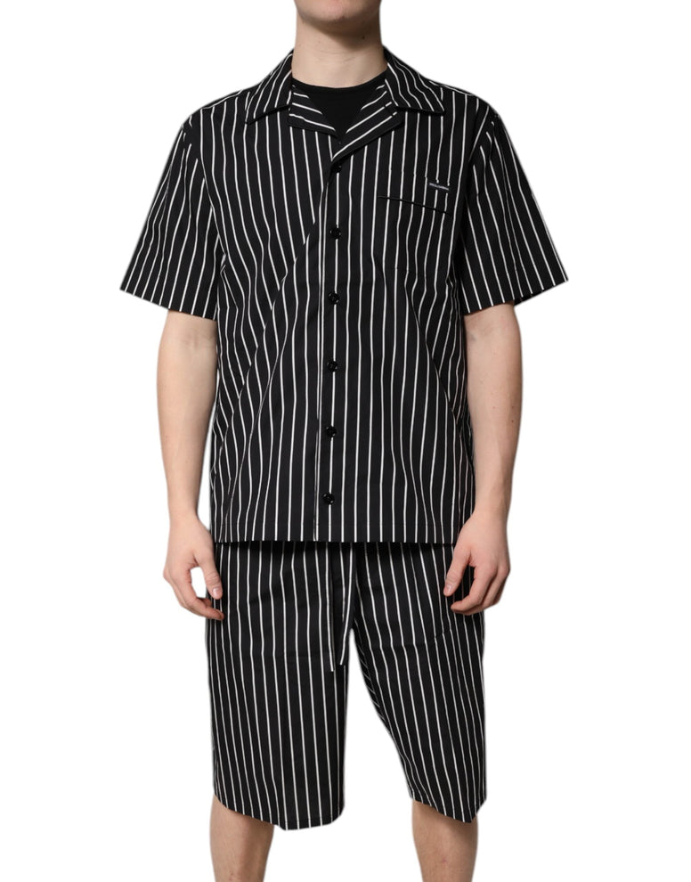 Dolce & Gabbana Black White Stripes Cotton Men Pajama Set Sleepwear Dolce & Gabbana