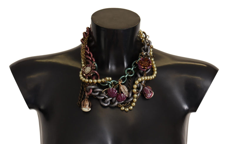 Dolce & Gabbana Gold Brass Sicily Floral Crystal Statement Necklace Dolce & Gabbana