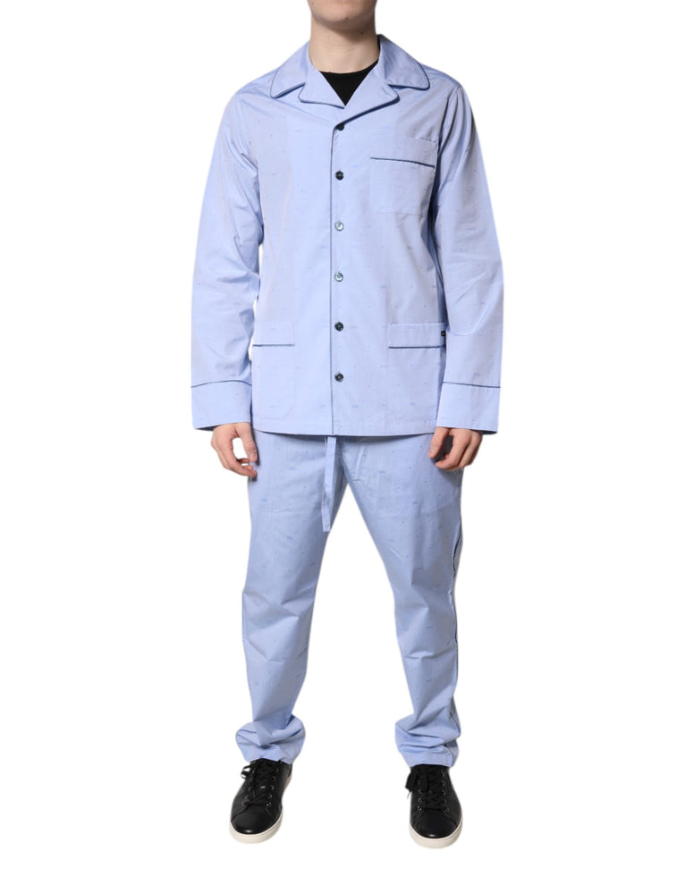 Dolce & Gabbana Light Blue DG Logo Cotton Men Pajama Set Sleepwear