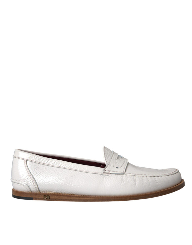 Dolce & Gabbana White Leather Slip On Mocassin Loafers Shoes Dolce & Gabbana