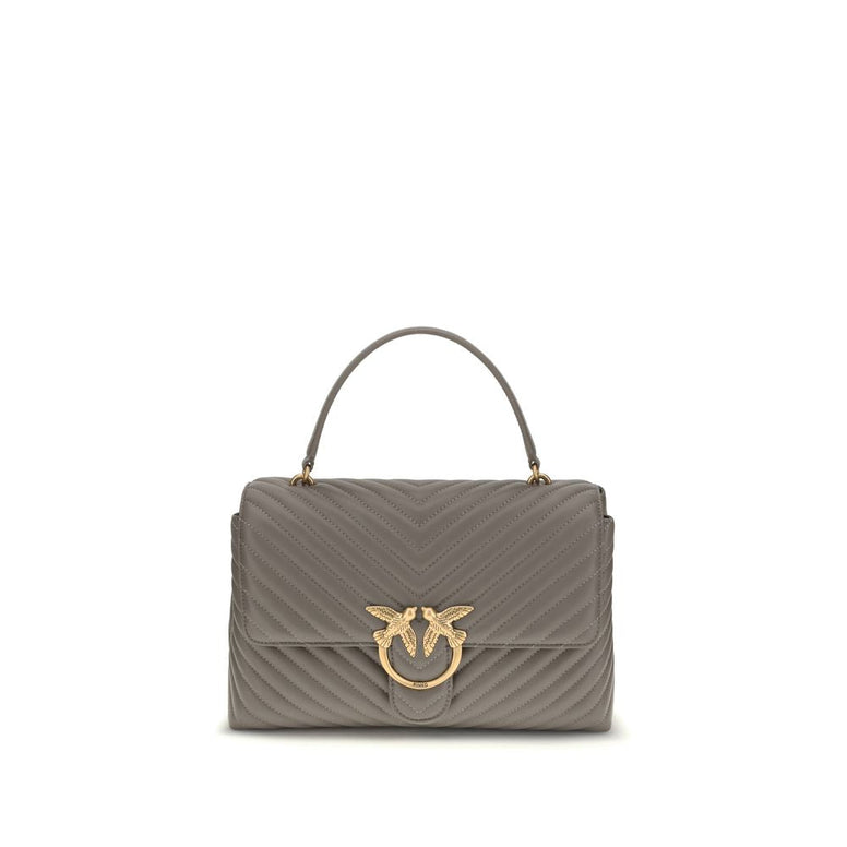 Pinko Love Lady Handtasche aus Kalbsleder, magnetischer Klappverschluss, ikonisches goldplattiertes Love Birds-Logo auf der Vorderseite, gestepptes und gepolstertes Design, zwei Innenfächer, abnehmbarer Schulterriemen aus Kette mit glattem Ledereinsatz, flacher, fester Tragegriff, flache Innentasche mit Reißverschluss, ikonisches Ton-in-Ton gesticktes Markenmonogramm auf der Rückseite.
