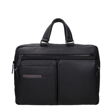 Piquadro Black Leather Business And Laptop Bag