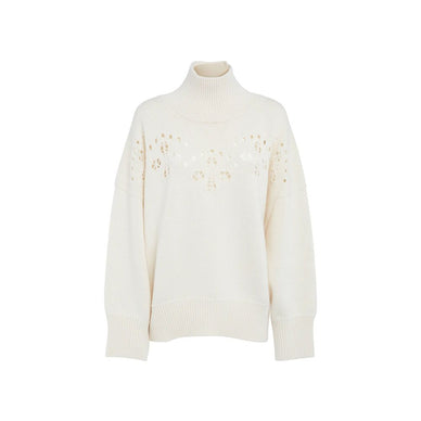 – Composition : 100 % laine – Manches longues – Finitions côtelées – Lavage à la main – Col montant – Maille ajourée – Détails perforés – Épaules tombantes – Manches bouffantes – Fabriqué en Italie – Genre : FEMME
