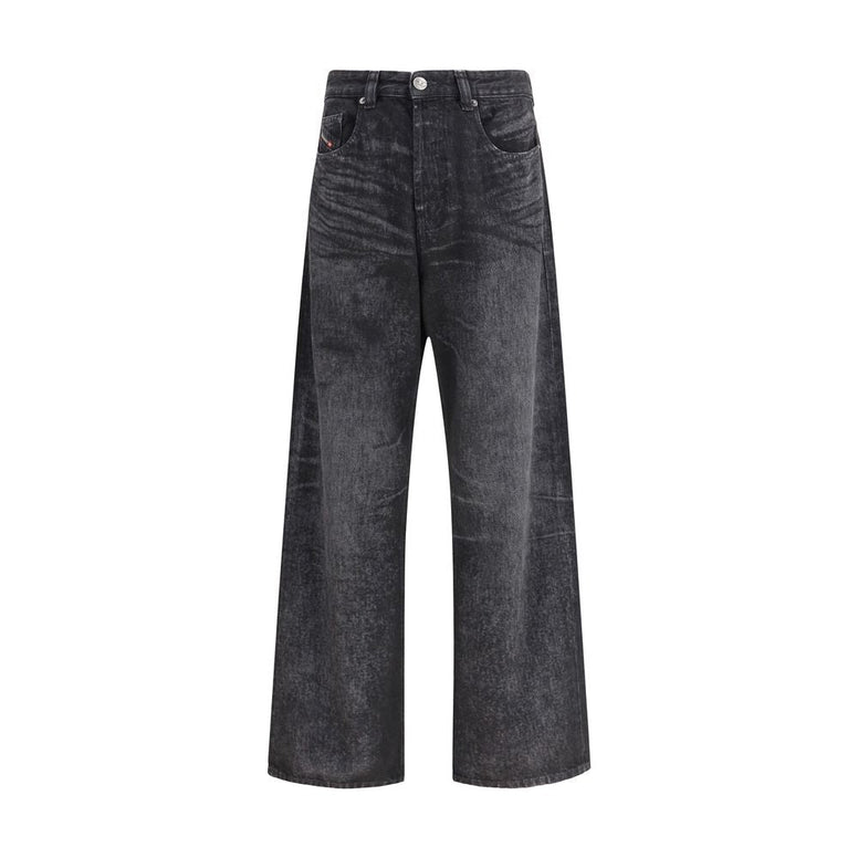 Diesel Black Cotton Relaxed Fit Jeans