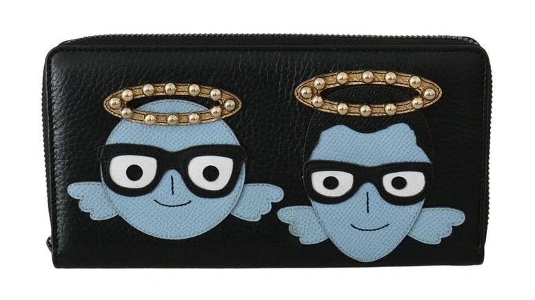 Dolce & Gabbana Black Blue Leather #DGFAMILY Zipper Continental Wallet Dolce & Gabbana