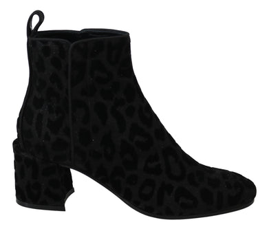 Dolce & Gabbana Black Leopard Short Boots Zipper Shoes Dolce & Gabbana