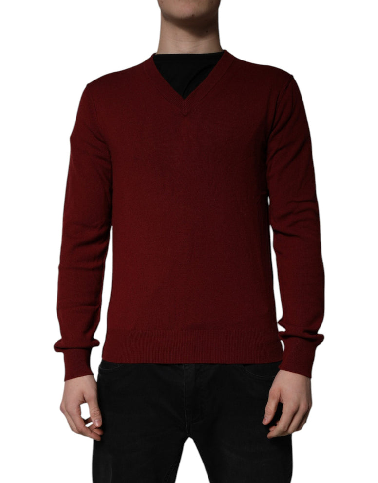 Dolce & Gabbana Maroon Cashmere V-neck Men Pullover Sweater Dolce & Gabbana