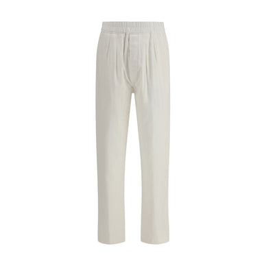 Le pantalon de détente plissé à rayures chevrons de Tom Ford apporte une touche d'élégance décontractée au loungewear moderne. Confectionné dans un motif à chevrons rayés, il est doté d'une taille élastiquée pour un confort optimal et de plis sur le devant qui structurent la silhouette et lui confèrent un drapé gracieux. Deux poches passepoilées à l'avant et deux à l'arrière complètent ce modèle alliant praticité et sophistication, à l'image du savoir-faire tailleur emblématique de la marque.