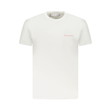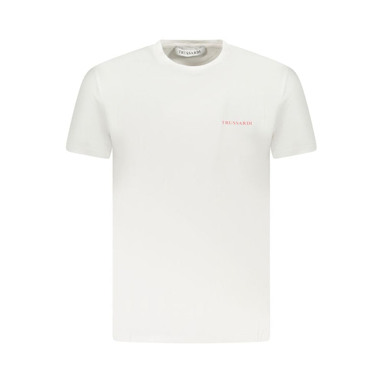 Unleash your inner fashion mogul with this striking Trussardi tee, where casual meets iconic luxury. The crisp white backdrop lays the foundation for a head-turning brush print, emblazoned with the Trussardi logo for an unmistakable statement. Crafted from a blend of premium cotton and a hint of elastane, this short-sleeve, crew neck T-shirt promises both style and comfort. Perfect for elevating your off-duty wardrobe with a touch of Italian sophistication.