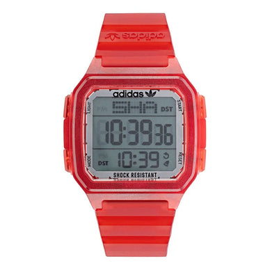 Type of mechanism: QUARTZ.Display: DIGITAL.Material Of Case: RESIN.Colour Of Case: RED.Material Of Bracelet: RESIN.Colour Of Bracelet: RED.Dial Colour:GREY.Glass type: MINERAL.Clousure: BUCKLE.Water resistence: 5ATM.Diameter dial: 48MM.Special Functions:Luz -alarm -Shock Resistant