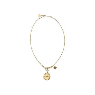 The Medals Pendant Necklace by Chloé combines style and personality with a distinctive design. Made of brass and embellished with a brecciated red jasper pendant, it is adjustable to fit perfectly around the neck. The Chloé logo is engraved on the back of the central medal, while a metal plaque adds further brand detail. The rotating tip allows you to indicate your zodiac sign, making each piece unique and personal.