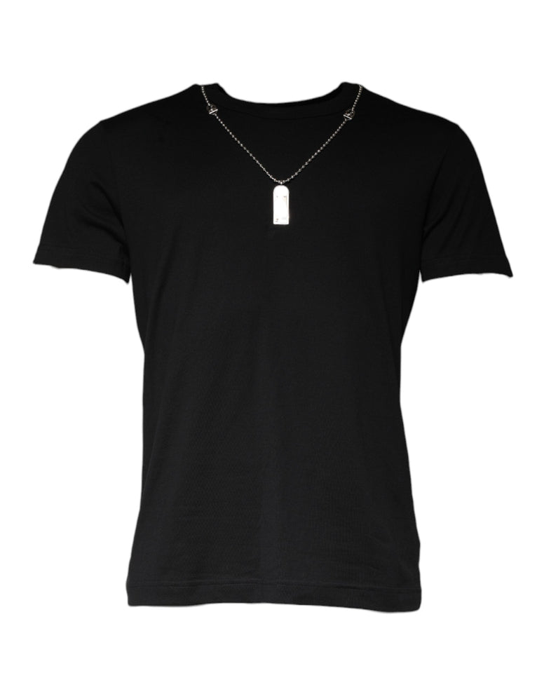 Dolce & Gabbana Black Cotton Necklace Embellished T-shirt Dolce & Gabbana
