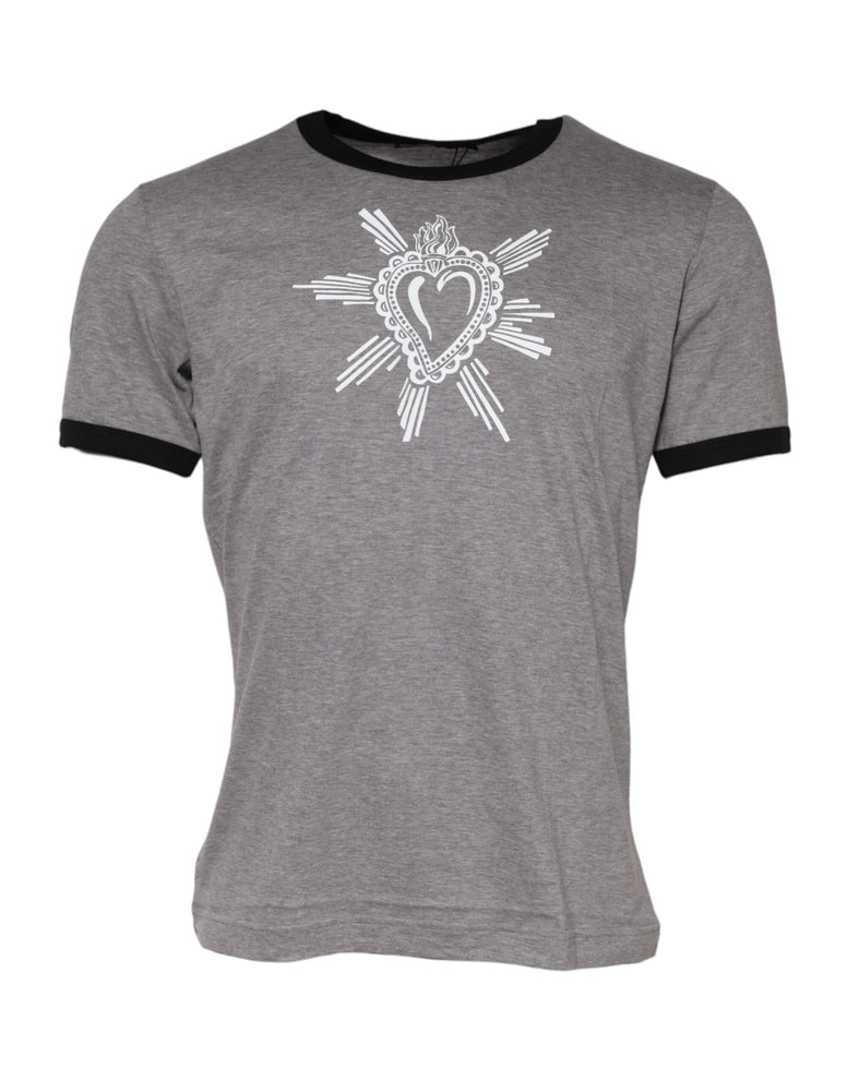 Dolce & Gabbana Gray Sacred Heart Cotton Crew Neck T-shirt