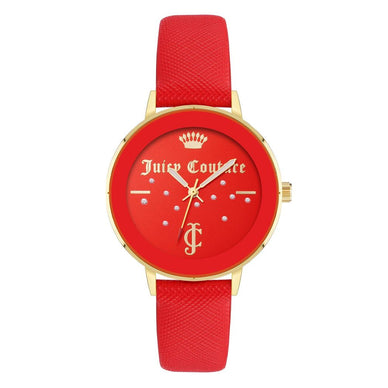 Type of mechanism: QUARTZ.Display: ANALOGICAL.Material Of Case: METAL.Colour Of Case: GOLDEN.Material Of Bracelet: POLIPRIEL.Colour Of Bracelet: RED.Dial Colour:RED.Glass type: MINERAL.Clousure: BUCKLE.Water resistence: NO.Diameter dial: 38 MM.Special Functions: