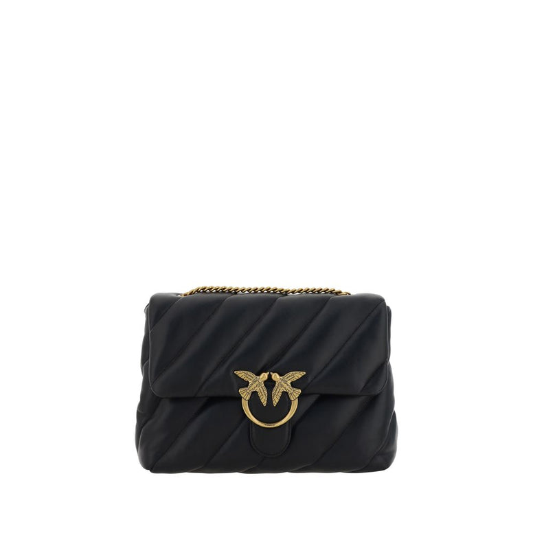 The Love Puff leather Shoulder Bag by Pinko combines style and functionality in a quilted, padded design. The front closure with magnetic button is decorated with the iconic gold-plated Love Birds embossed logo, while the back features a tone-on-tone embroidered monogram. The interior is organized into three compartments, and the sliding chain shoulder strap completes the model, making it elegant and practical.