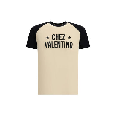 The Chez Valentino T-Shirt by Valentino is an essential garment with a bold style. Made with a ribbed crew neck, it is distinguished by the iconic Chez Valentino signature printed on the front, adding a graphic and recognizable touch. Perfect for completing casual looks with a distinctive accent.