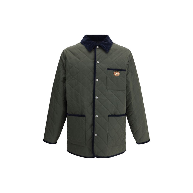 Valentino’s logo quilted Jacket combines functionality and style in a refined silhouette. Lined and lightly padded, it is enhanced by an appliquéd VLogo patch on the chest pocket, left side worn. The velvet collar and trim add a touch of textural elegance, while the three front patch pockets complete the design with practicality and character.