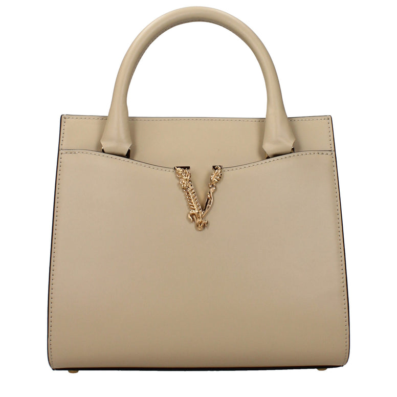The product with MPN 10059601A157131KD4V and code F85632 leather in beige is a handbags designed by Versace. It has features like front detail, back logo, adjustable shoulder, removable shoulder.