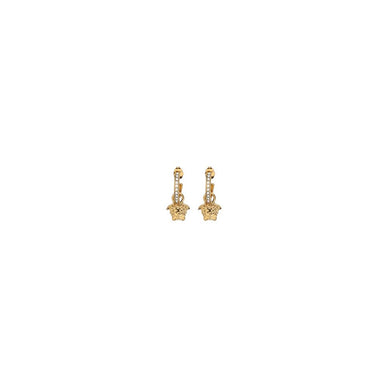 Earrings by Versace, pendant design, classic butterfly back closure, pendant with iconic gold-plated Medusa head.